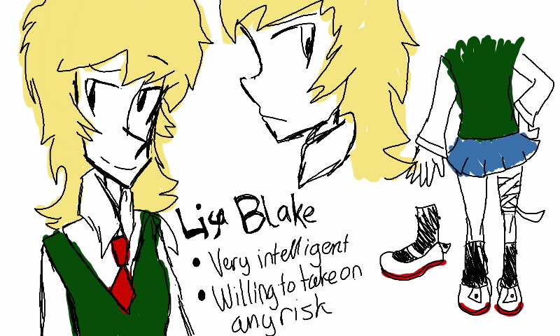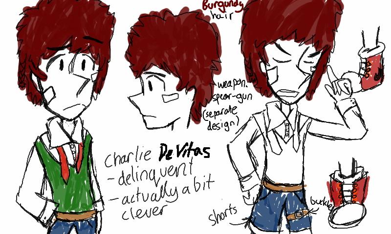 - Pictures of some of the main characters, drawn by my dear friend Wheels. This is really early on, at this point Charlie is still a man. Eventually I change this character to Charlotte de Vita, the space radio host. (August 2014)